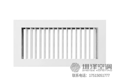 通常安裝在管道或側(cè)壁上,作為側(cè)供氣出口。雙層百葉風口有兩層可調(diào)角度的活動葉片,短葉片用于調(diào)節(jié)送風氣流的擴散角度,也用于改變氣流的方向。但是,調(diào)節(jié)長葉片會使送風氣流附著在天花板上或以一定角度向下傾斜(當送風時)。雙層百葉風口的外刀片或單層百葉風口的刀片可以平行于長邊或短邊,可以根據(jù)客戶的要求選擇。